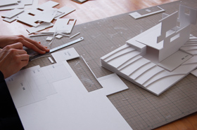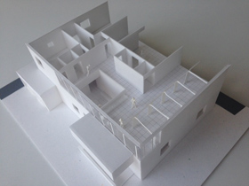 BLOG 2014.3.7 模型 迷った時や最終的に確認するときはやはり模型。CGにすることもあるが所詮は2次元の絵、信用できない。流石に今はクライアントに説明する図面や最終的な図面はCADだが、そこに至る過程は相変わらず手を真っ黒にして鉛筆でトレーシングペーパーにスケッチをしたり、模型を作ったりアナログのまま。出来上がる建築が結局アナログそのものなので当たり前と言えば当たり前か。